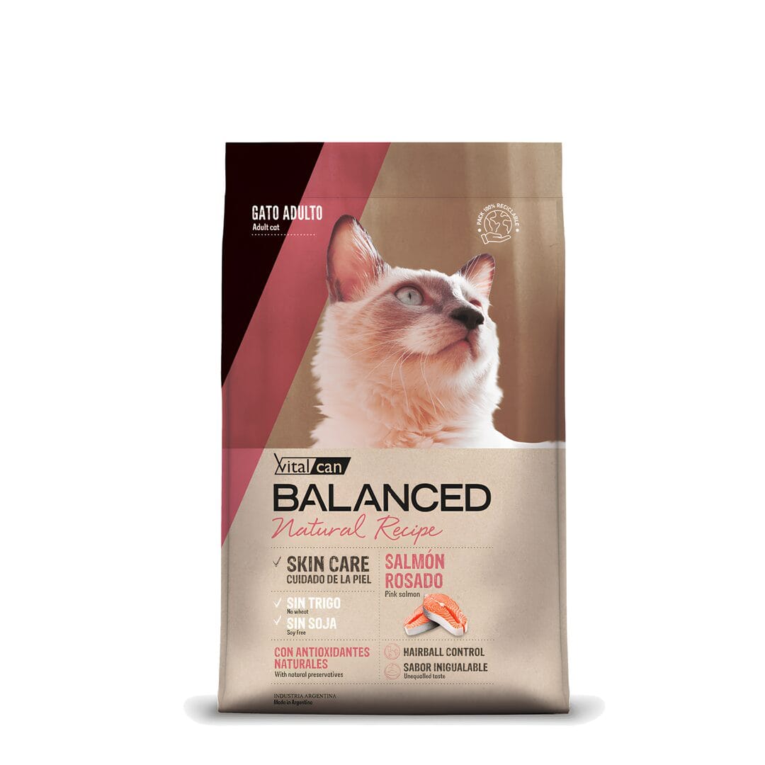 Harina de salmón, arroz, gluten meal, arvejas, aceite de pollo, hidrolizado de hígado de pollo, pulpa de remolacha (fuente de fructooligosacáridos -FOS-), aceite de pescado, levadura de cerveza, sal, celulosa en polvo, bisulfato de sodio, taurina, metionina, zeolita, cloruro de potasio, sorbato de potasio, lisina, L-carnitina, inulina, nucleótidos de levadura, paredes de levadura (fuente de mananooligosacáridos -MOS-), extracto de Yucca schidigera, antioxidantes naturales (extracto de romero, lecitina, tocoferoles) y polifenoles, glucosamina, metilsulfonilmetano. Vitaminas: A, D3, E, K3, B1, B2, B6, B12, biotina, ácido fólico, ácido nicotínico, ácido pantoténico, vitamina C, colina. Minerales: yodo, hierro, manganeso, cobre, selenio y zinc.