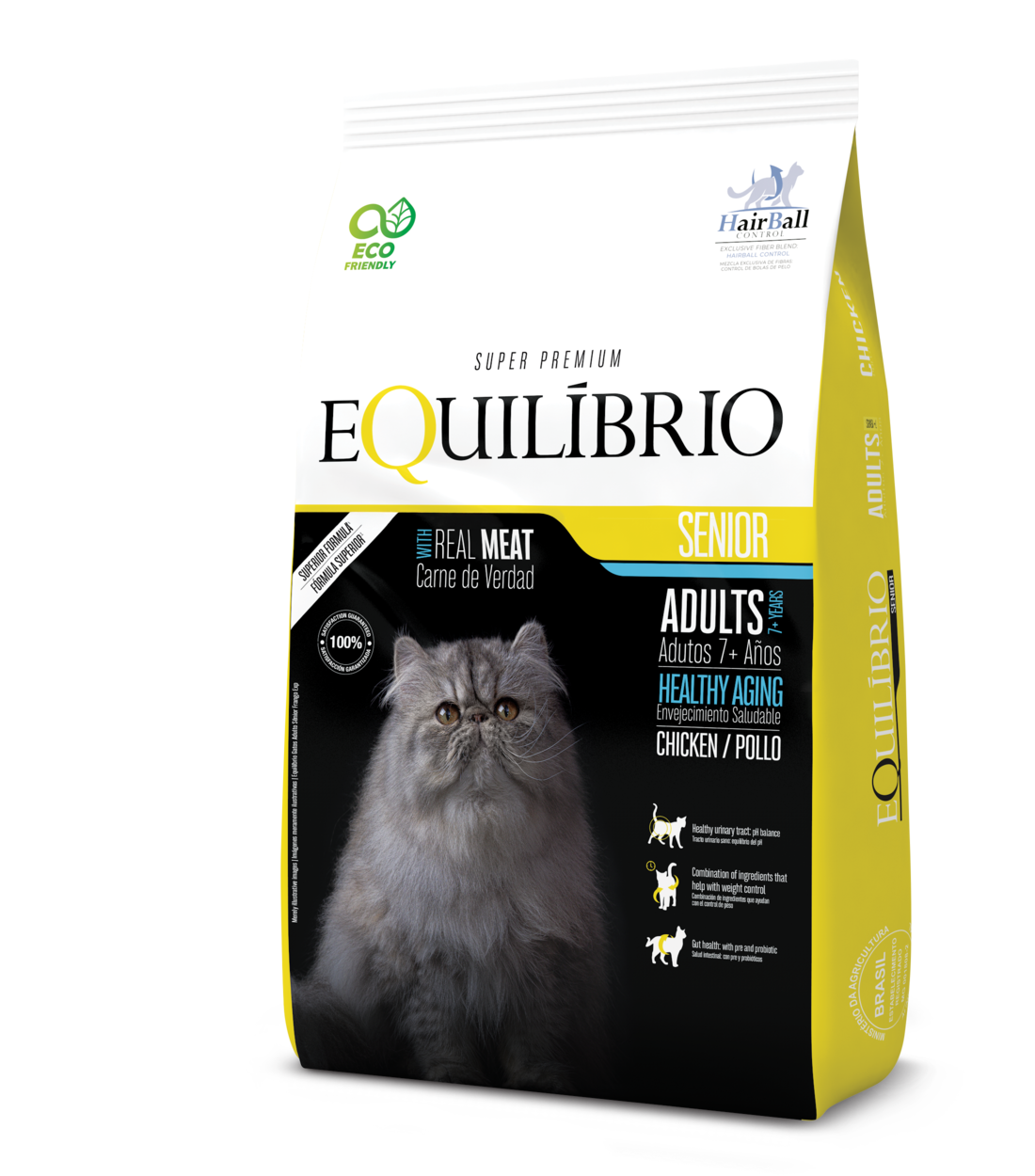 Equilibrio Gatos Adultos Senior con Pollo es un alimento completo y premium, diseñado especialmente para gatos mayores de 7 años. Su fórmula avanzada promueve un envejecimiento saludable al combinar antioxidantes, nutrientes esenciales y proteínas de alta calidad, apoyando la vitalidad y prolongando la calidad de vida de los gatos en etapa senior.