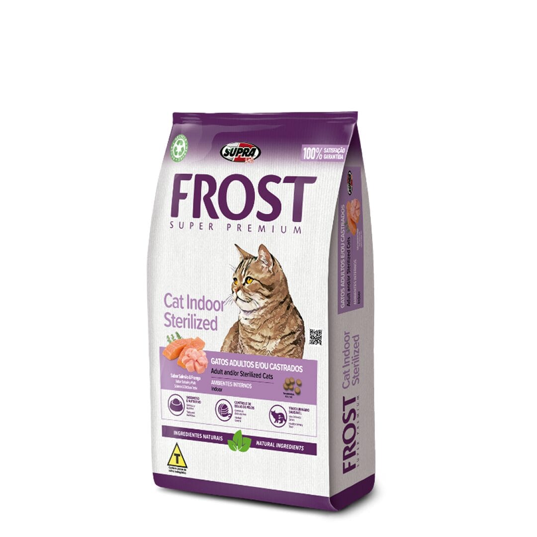 Frost Cat Indoor Sterilized es un alimento premium diseñado especialmente para gatos castrados o con tendencia al sobrepeso. Su fórmula equilibrada combina proteínas de alto valor biológico, fibras naturales y nutrientes esenciales que ayudan a mantener una condición corporal saludable y un sistema digestivo en equilibrio.