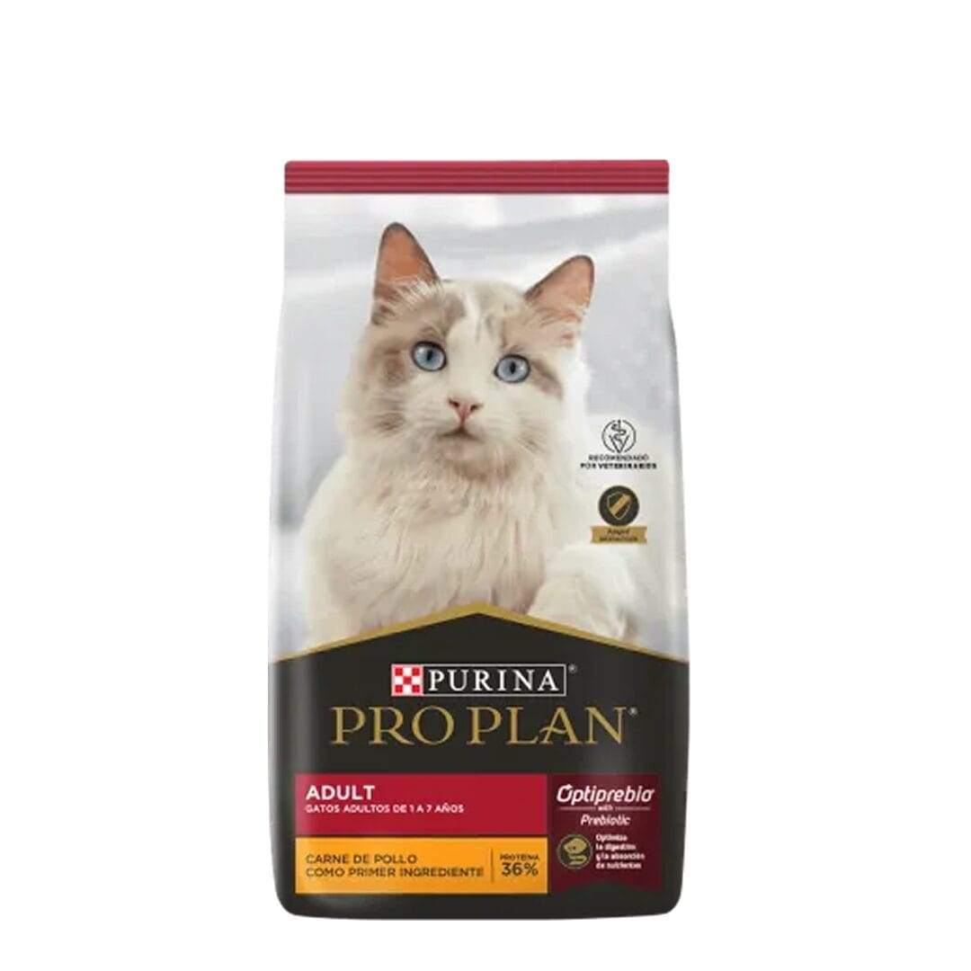 Pro Plan® Gato Adulto Pollo con OptiPrebio®: alimento premium con prebióticos, proteínas de alta calidad y tecnologías para digestión, dientes sanos y tracto urinario.